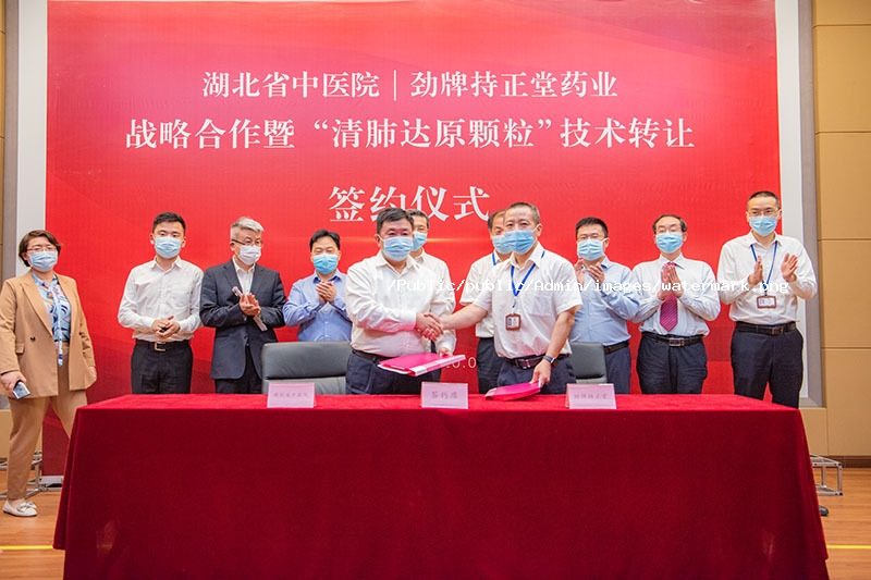 5月11日,湖北省中醫(yī)院與勁牌持正堂藥業(yè)戰(zhàn)略合作暨“清肺達原顆?!奔夹g轉讓簽約儀式,在勁牌持正堂藥業(yè)隆重舉行。湖北省中醫(yī)院黨委書記巴元明、院長何紹斌,黃石市衛(wèi)健委主任劉安定,勁牌公司董事長、總裁吳少勛,勁牌持正堂藥業(yè)總經(jīng)理李清安出席儀式。 來訪領導先后參觀了勁牌研究院、中藥提取車間,了解了公司數(shù)字提取工藝,和疫情期間中藥產(chǎn)品的生產(chǎn)捐贈情況。隨后在持正堂藥業(yè)展開座談會議。 會上,雙方對各自發(fā)展歷程、運營狀況、技術強項及面臨困難進行了深入溝通。 巴元明書記以“重大疫情”、“重大擔當”、“重大機遇”、“重大合作”四個重大高度概括此次合作及其背景。他表示,在這次傳播速度最快、感染率最廣、防控難度最大的歷史性疫情面前,雙方都展現(xiàn)出了高度的責任與擔當;同時,中醫(yī)藥在本次疫情防控中彰顯的突出效果為中醫(yī)藥產(chǎn)業(yè)的發(fā)展創(chuàng)造了天時、地利、人和的重要機遇,期望以此次“清肺達原顆?!?/strong>臨床批件申報為起點,與勁牌一起傳承精華,守正創(chuàng)新,攜手打造湖北中醫(yī)藥強省。 何紹斌院長表示,此次與勁牌的戰(zhàn)略合作,雙方目標一致,互補性強,可充分發(fā)揮湖北省中醫(yī)院的科研及臨床優(yōu)勢和勁牌的市場優(yōu)勢。此次合作基礎良好,前景光明。期望雙方加強溝通和交流,共同推進戰(zhàn)略合作的深入開展。 會上,湖北省中醫(yī)院院長何紹斌與勁牌有限公司董事長吳少勛,及勁牌持正堂藥業(yè)總經(jīng)理李清安,分別簽訂了“湖北省中醫(yī)院與勁牌持正堂藥業(yè)有限公司共同振興發(fā)展湖北省中醫(yī)藥事業(yè)的戰(zhàn)略合作協(xié)議”和“‘清肺達原顆?!夹g轉讓與新藥臨床前研究合作協(xié)議”。 據(jù)了解,湖北省中藥資源豐富,中藥工業(yè)存在較大提升空間,湖北省中醫(yī)院作為省內龍頭中醫(yī)院,與勁牌達成戰(zhàn)略合作,包括“積極合作開展茯苓等湖北省優(yōu)勢中藥材的種植、基礎研究及產(chǎn)業(yè)化推廣應用”以及“共同推進中藥配方顆粒與傳統(tǒng)飲片臨床等效性評價等工作的開展”,以推動湖北省中醫(yī)藥從種植、工業(yè)生產(chǎn)到臨床使用全產(chǎn)業(yè)鏈的發(fā)展,為將湖北打造為中醫(yī)藥強省助力。 清肺達原顆粒簡介:該方是在國醫(yī)大師梅國強教授的指導下,由巴元明等專家研制的組方(即湖北省中醫(yī)院“肺炎1號”),是唯一一個用于治療新型冠狀病毒肺炎的湖北省地方組方。已全面應用于全省新型冠狀病毒感染肺炎疑似、臨床診斷病例及確診病例治療中。從當前的臨床統(tǒng)計結果來看,“清肺達原顆?!迸R床治愈率達到了95.34%,療效顯著。除治療新型冠狀病毒肺炎之外,該方還可適于由病毒引起的甲流、乙流、禽流感等流行性感冒,具有較大的潛在開發(fā)價值。